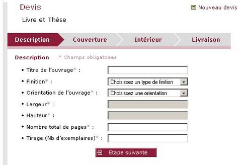 Un formulaire de demande de devis vous permet de détailler votre demande.